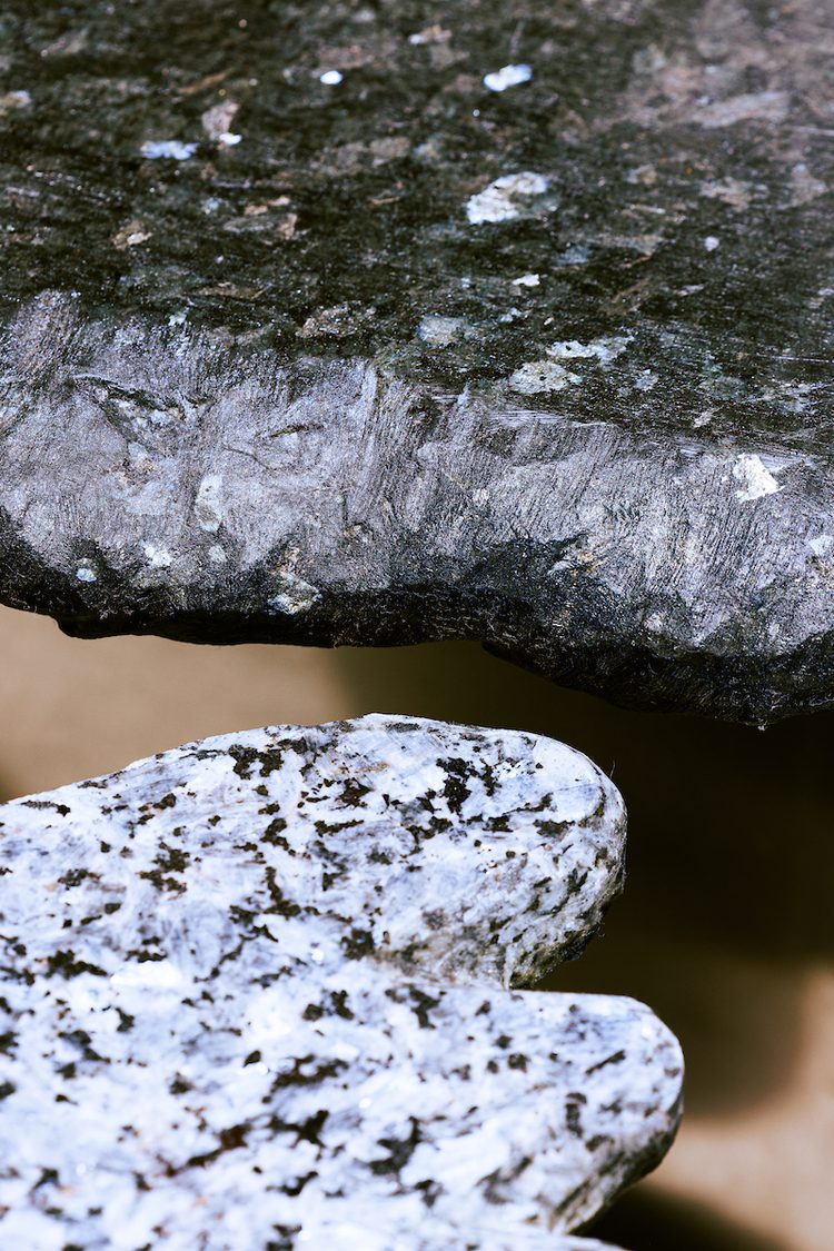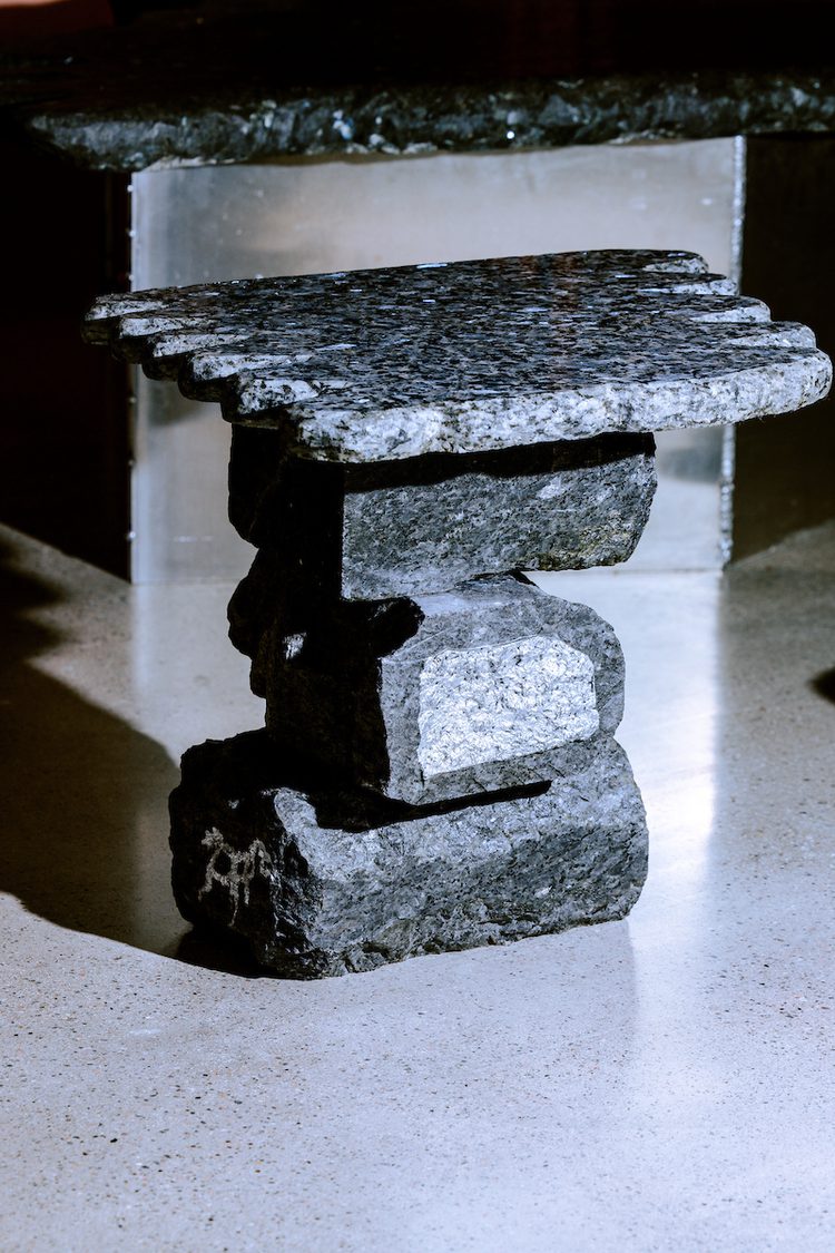 Handpicked from the quarry in Larvik, the materials have undergone a careful process. "As I walked around the quarry, I looked for distinctive stones and looked for opportunities to combine the stones into sculptural tables," says Gallefoss. After the Larvikite was transported to his studio in Oslo, he processed each stone individually, putting them together in different ways. The result was three unique tables, which now adorn the offices of Bielke&Yang.