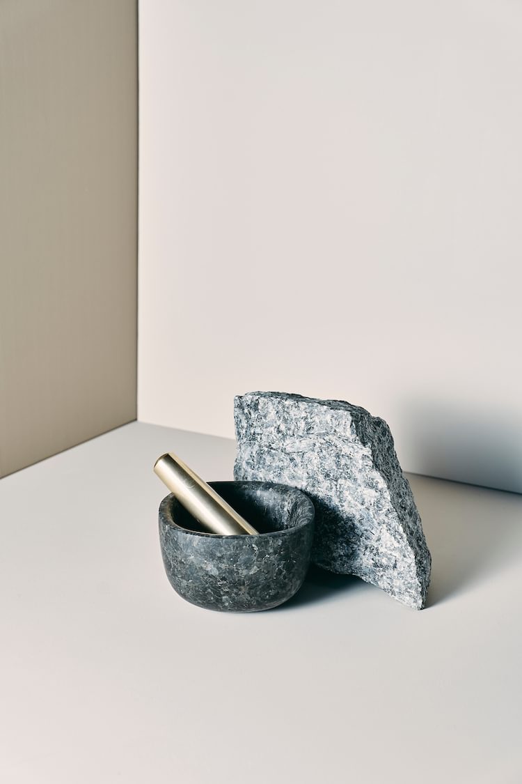 Kolleksjonen er laget av Lundhs’ naturstein, larvikitt og anortositt. Den eksklusive serien består av to brett, to skåler, to vaser, og en morter i steinene Lundhs Emerald®, Lundhs Royal®, Lundhs Blue® og Lundhs Antique®, komplementert av tre- og messingdetaljer.