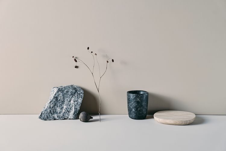 Essence, laget av Jenkins & Uhnger, er en kolleksjon i naturstein fra Lundhs Real Stone®, supplert med tre- og messingdetaljer.
