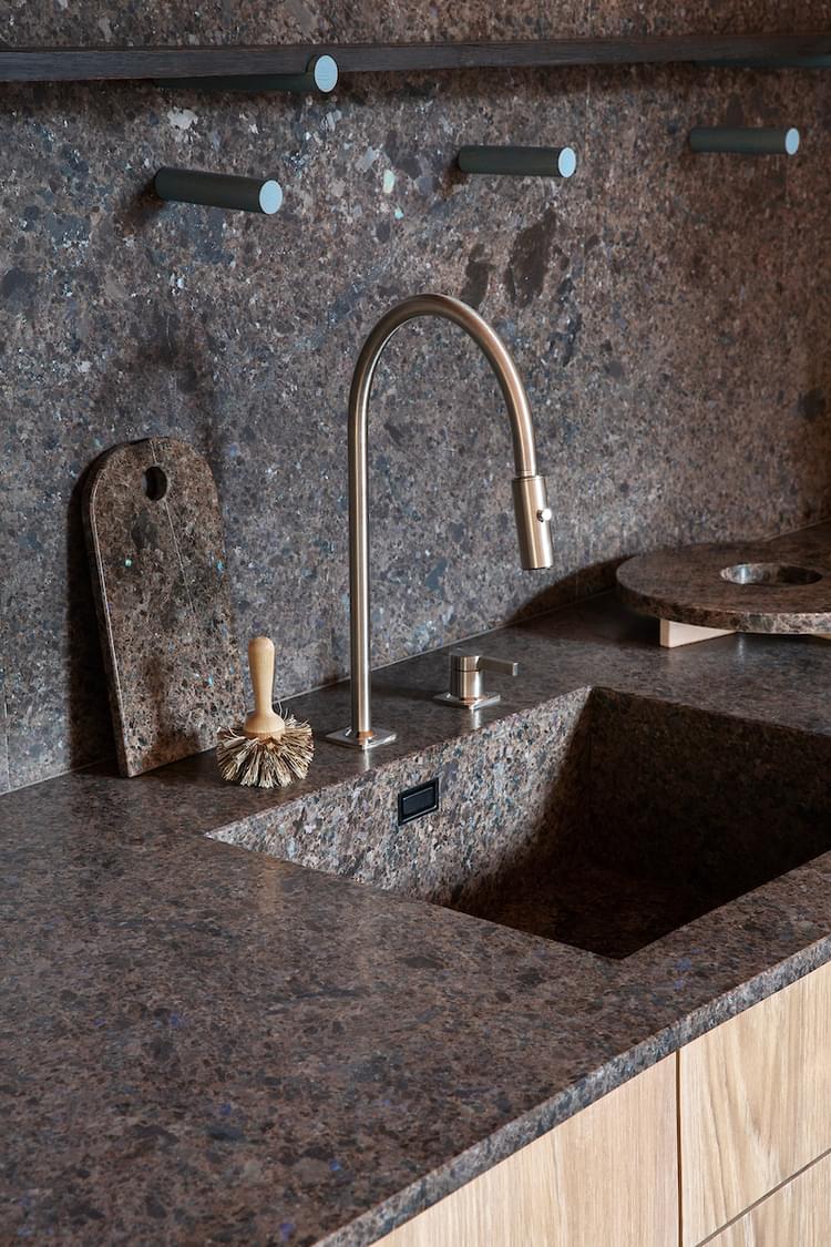 Den rå steinoverflaten slipes med diamantverktøy og poleringspulver til den blir glatt og blank.