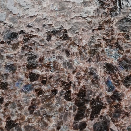 Den rå steinoverflaten slipes med diamantverktøy og poleringspulver til overflaten blir helt glatt og matt.