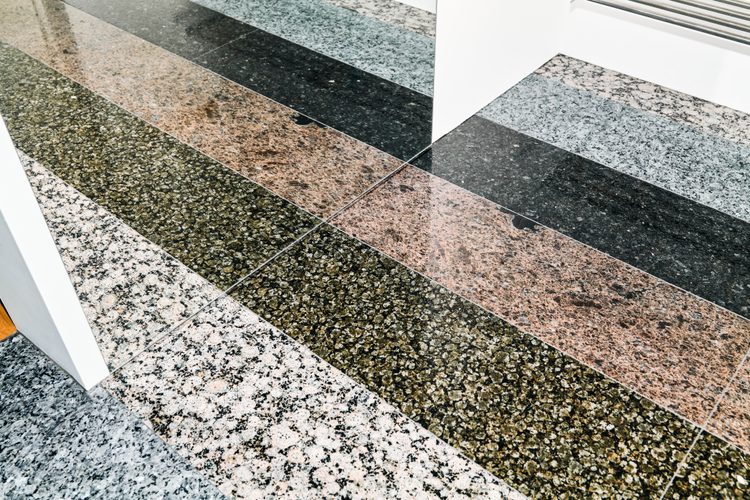 I inngangspartiet ønsket familien å gjøre et tydelig statement, et kunstnerisk blikkfang inspirert av den britiske kunstneren Martin Creed. Gulvet er flislagt i brede, grafiske striper av naturstein fra både Norge og Finland: Lundhs Antique®, Lundhs Emerald®, Lundhs Royal®, Lundhs Baltic Green® og Lundhs Baltic Brown Light®.