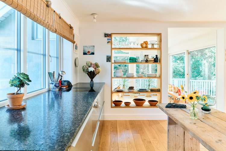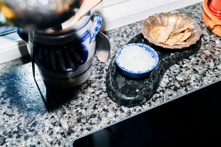 Benkeplaten tåler varme opptil 300 grader og krever minimalt vedlikehold – et varig og praktisk valg for et levende familiekjøkken. Natursteinens subtile glans reflekterer lyset på en måte som endrer seg gjennom dagen, en daglig påminnelse om naturens tilstedeværelse i hjemmet.