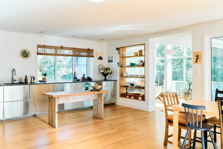Gjennom hele hjemmet står naturmaterialer i fokus, ikke bare for sin estetiske kvalitet, men for den følelsen de tilfører hverdagen. Et sted for ro, for liv og for lek – med naturen som nærmeste nabo.