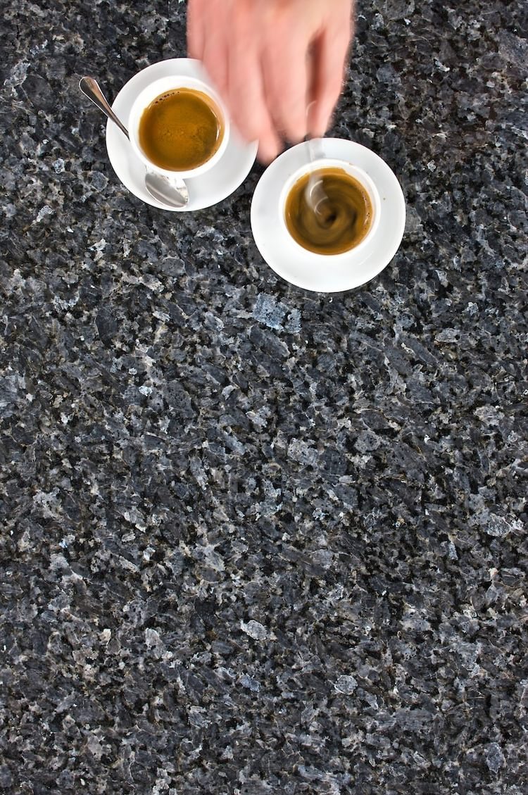 Den rå steinoverflaten slipes med diamantverktøy og poleringspulver til den blir glatt og blank.